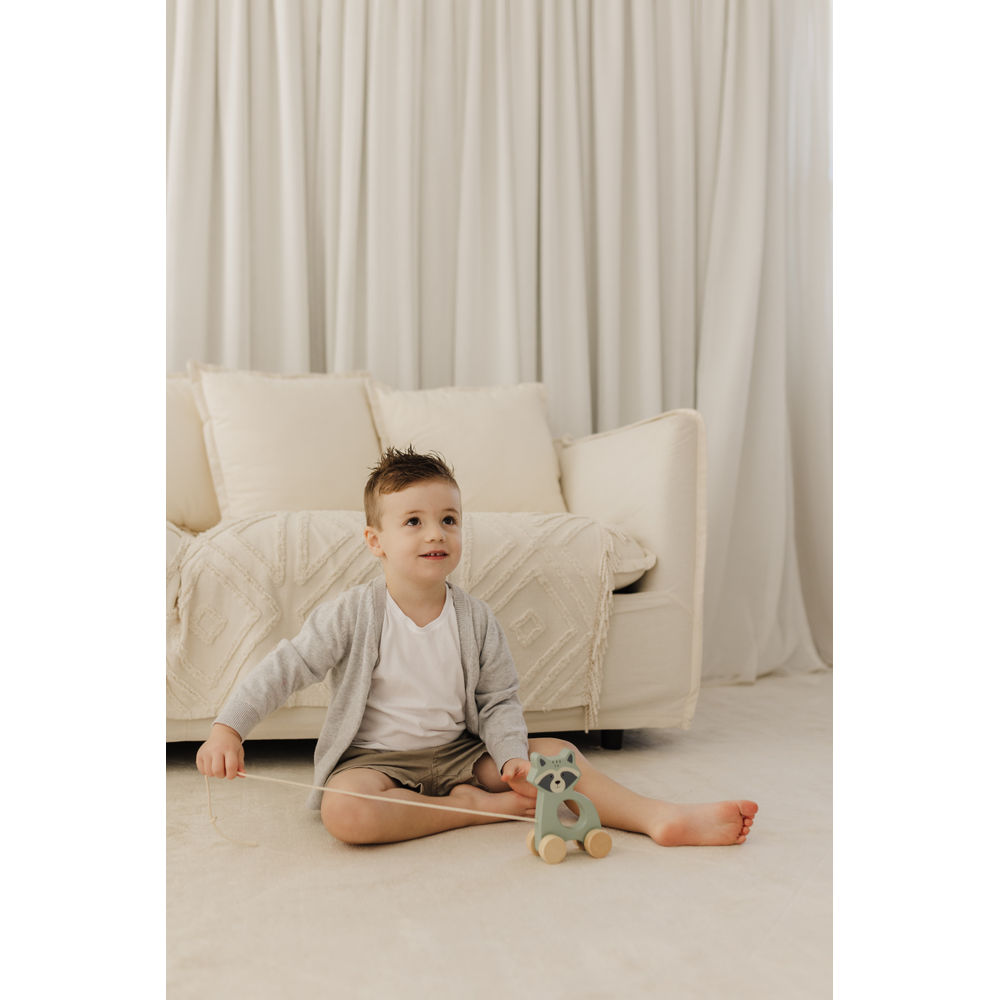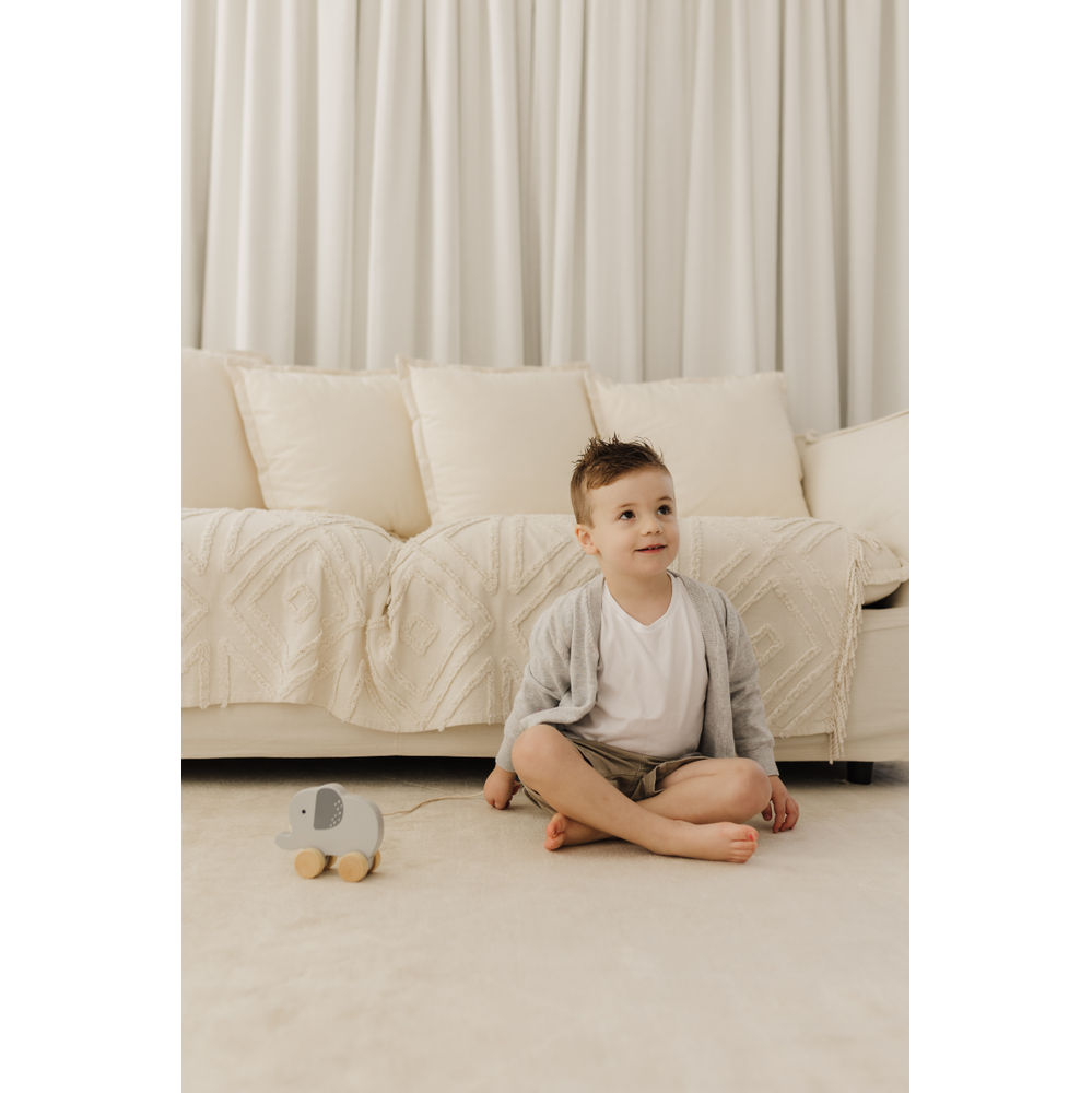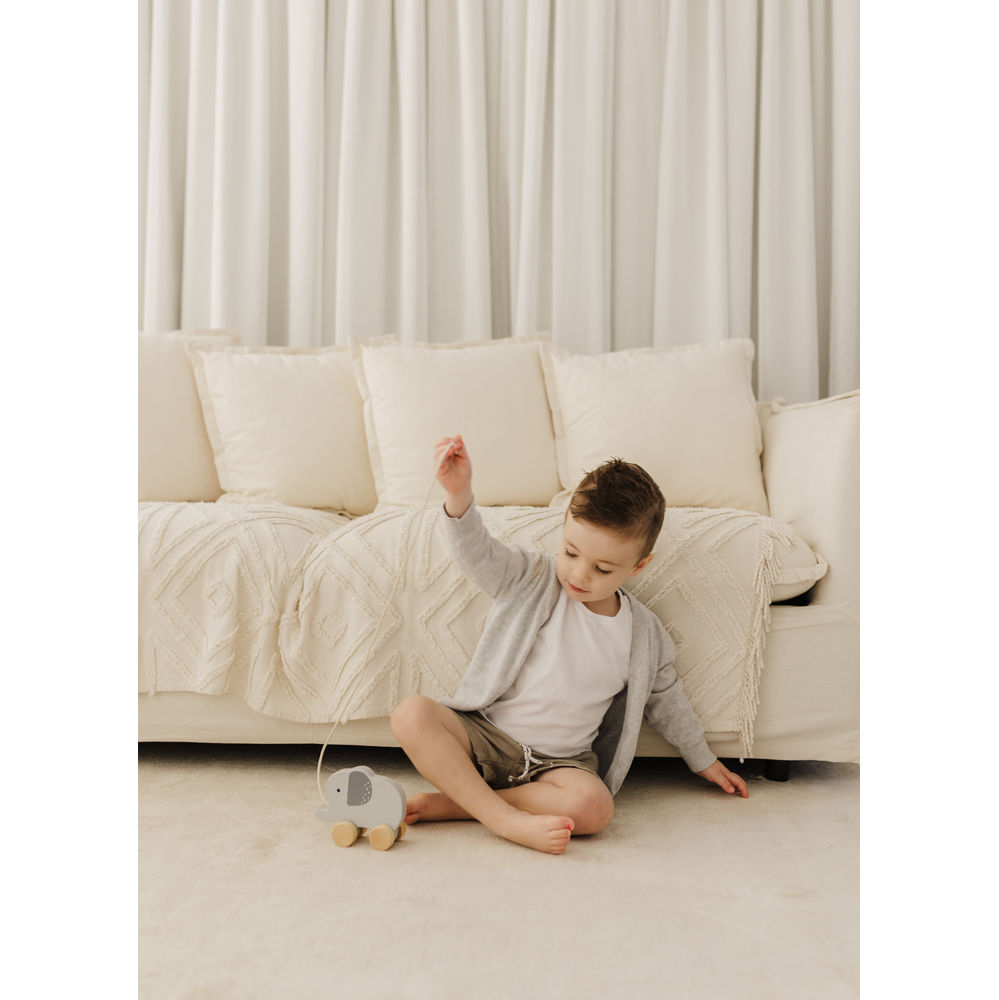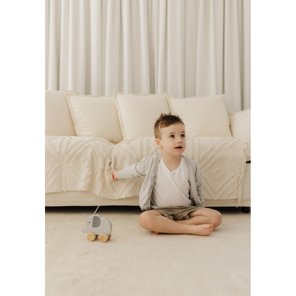 Introducing the adorable Bubble Elephant Wooden Pull Along Toy - a charming grey, pull-along toy embodying timeless simplicity. This timeless treasure is designed to capture the hearts of both children and parents alike