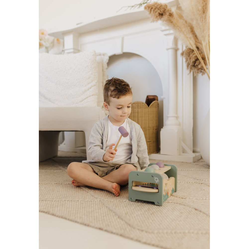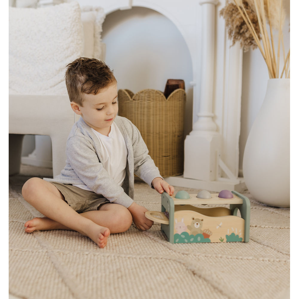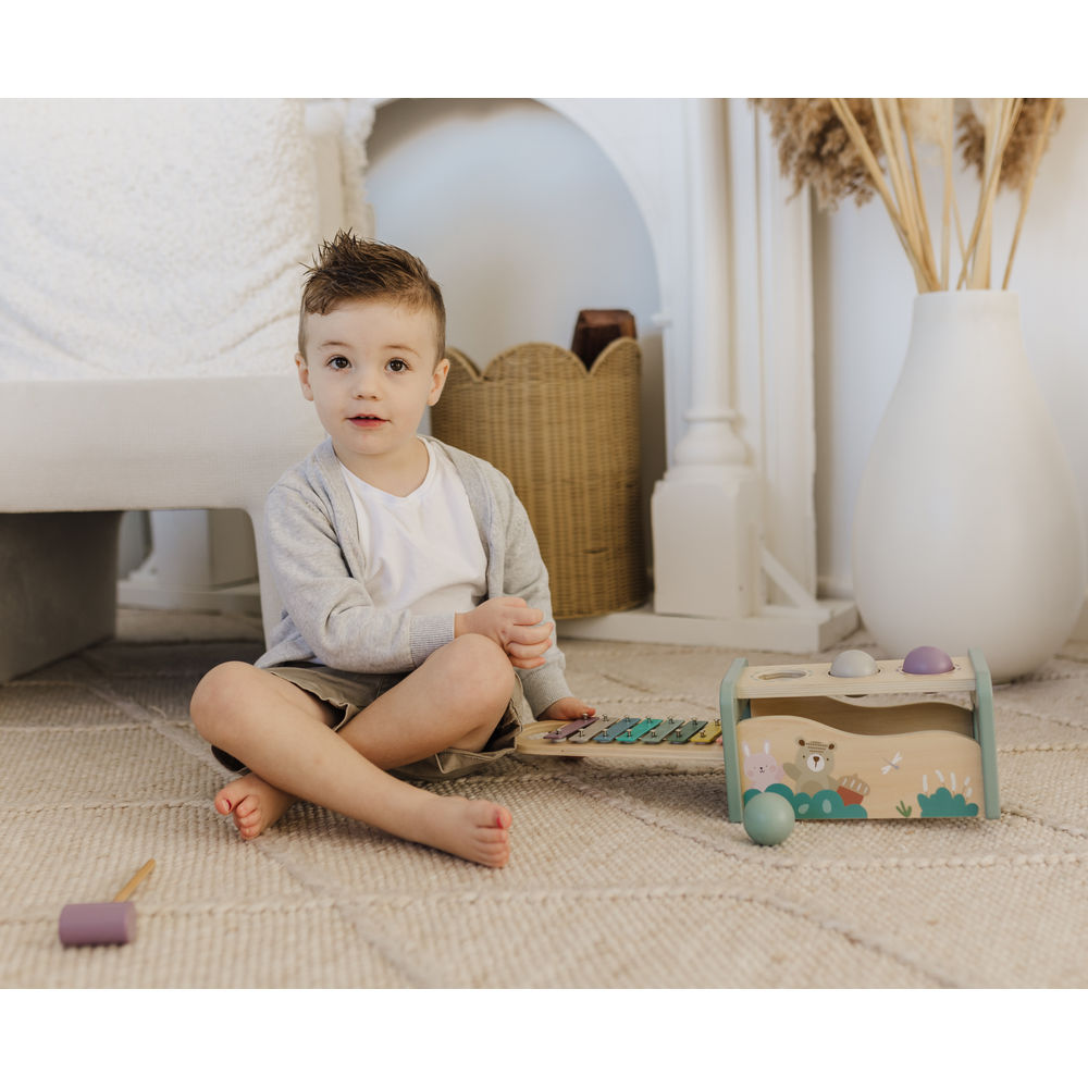 Bursting with colour and creativity, Bubble's Tap Tap Xylophone is a joyful blend of music and movement. Little ones will love tapping the wooden balls through the holes and watching them roll over the xylophone, creating cheerful notes as they go. With friendly animal illustrations and soft pastel tones, it’s as beautiful as it is engaging