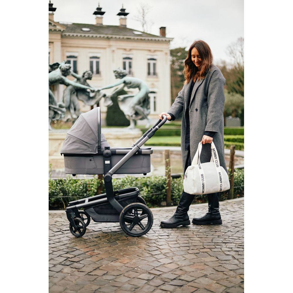 Meet Mommy Club! Childhome's newest Mommy Bag is more trendy and fashionable than ever! Mommy Club is the perfect everydag bag moms can take with them to work, an outing with friends or a quick outing taking the essential accessories only. This very practical bag has a volume of 22L and is very convenient due to its size and functionalities. The bag contains a changing mat, an insulation pouch and three elastic pouches to store wet wipes, diapers, baby bottles, etc