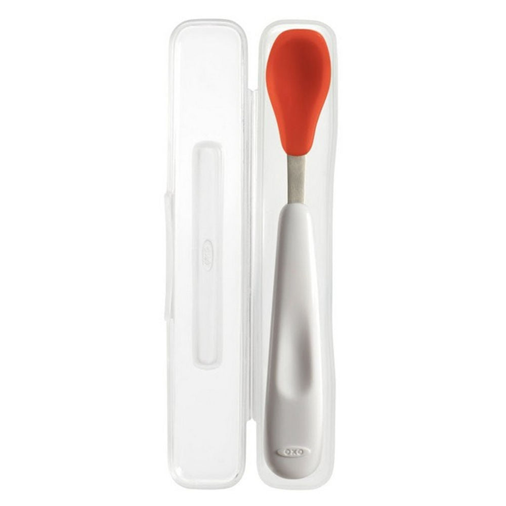 An Oxo Tot Best Seller! A soft, right-sized Spoon for gentle feeding on the go. Comes with a compact carrying case.