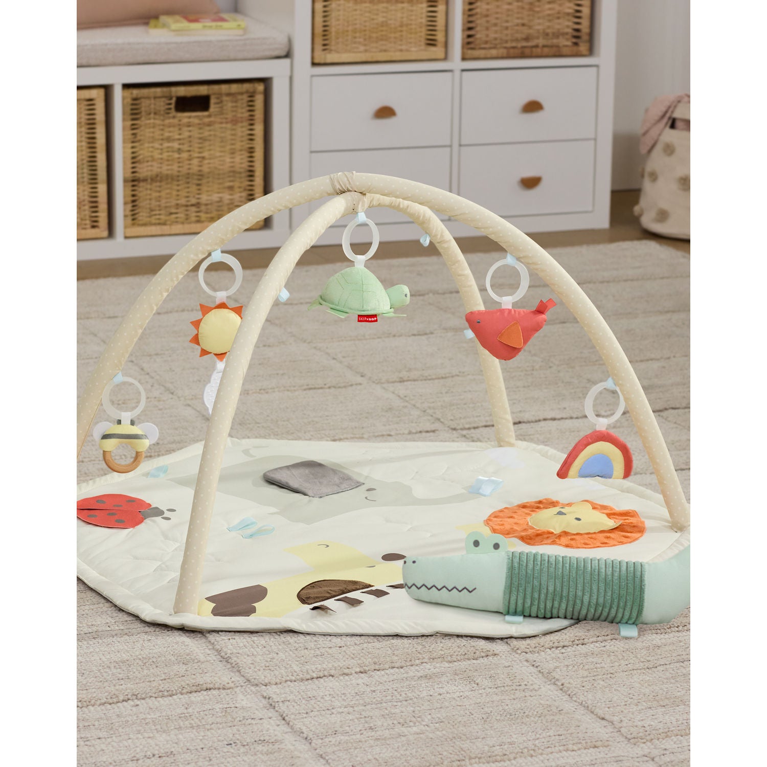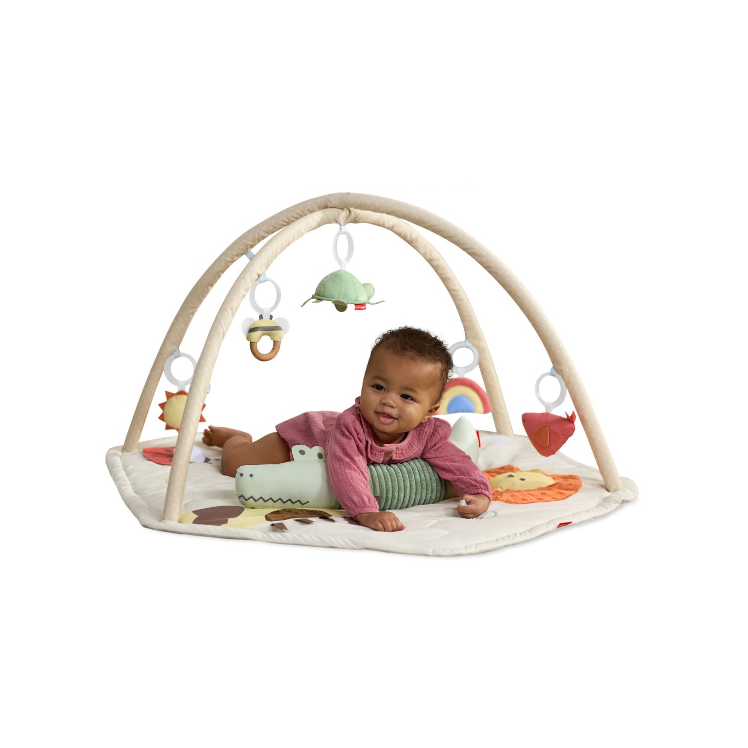 With high-contrast patterns, various textures, and fun sounds, this activity gym encourages tummy time, reaching, grasping, and overall motor skill development. The removable toys make playtime fun both on and off the mat, while the neutral colour palette blends seamlessly with any home decor